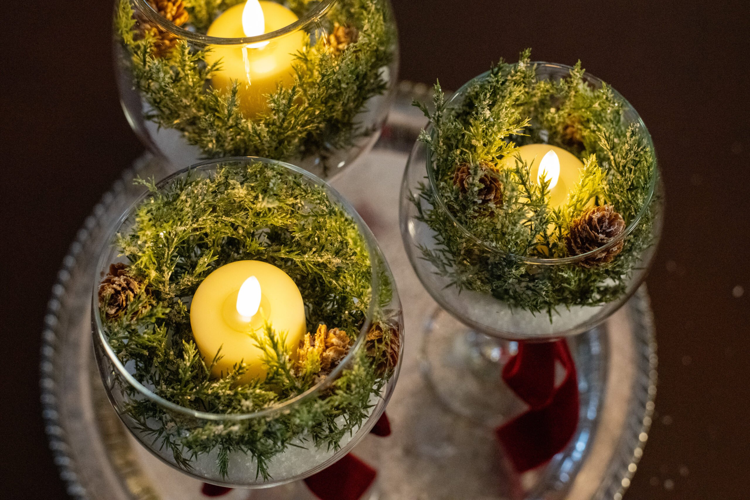 Even if you’re short on time, you can still whip up an elegant centerpiece. We’ve put together three gorgeous centerpieces using things most of us have around the home, and each takes under ten minutes to make.